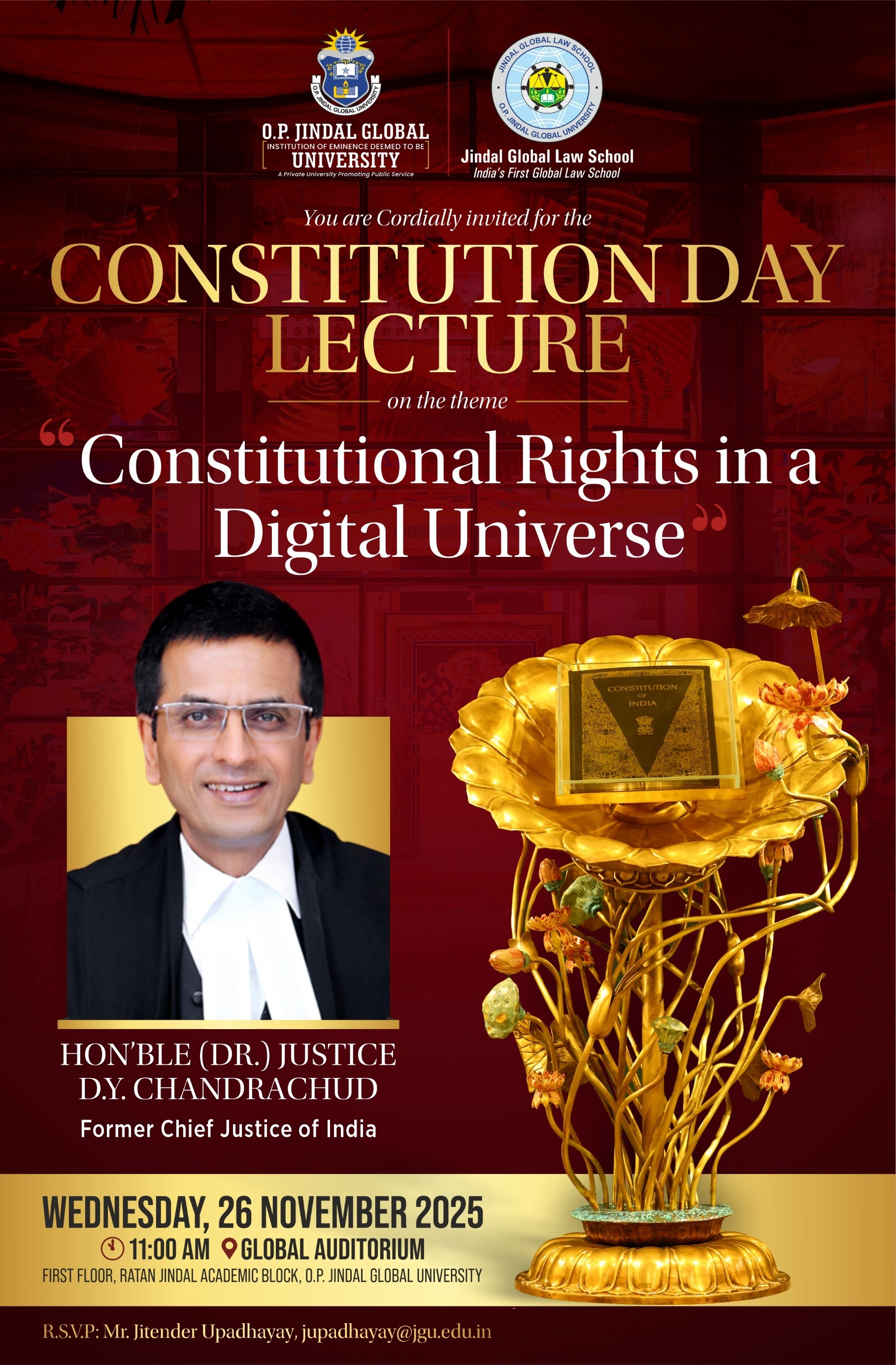 On November 26, Hon'ble Dr. Justice D.Y. Chandrachud, Former Chief Justice of India, delivered the Constitution Day Lecture at JGU on the theme 'Constitutional Rights in a Digital Universe'.