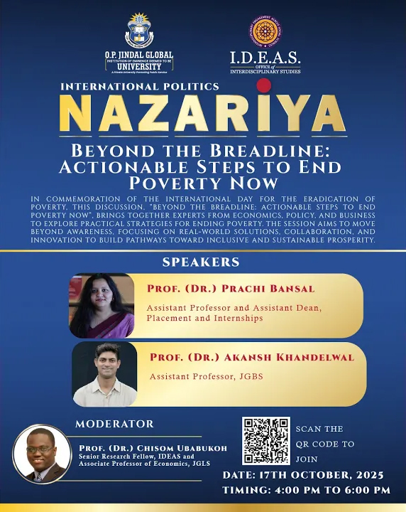At IDEAS, our hopes for International Politics (IP-IDEAS here onwards) are to facilitate a space where scholarship on IR maybe fostered, with a view to support critical, peripheral and innovative scholarship. The imagined goals for the cluster are fairly simple – to curate a space where leading conversations on IR may find room; to create room to include established as well as junior scholars to present and discuss their work; to promote teaching collaborations and discussions on pedagogy among IR teachers with a view to build collaborative learning spaces for our student community; to support scholarship and projects of the IP-IDEAS team by facilitating opportunities to network and collaborate with relevant scholars, wherever they may be located; finally, to encourage building a culture of research workshops and dialogic symposiums not just among faculty but also students at JGU.