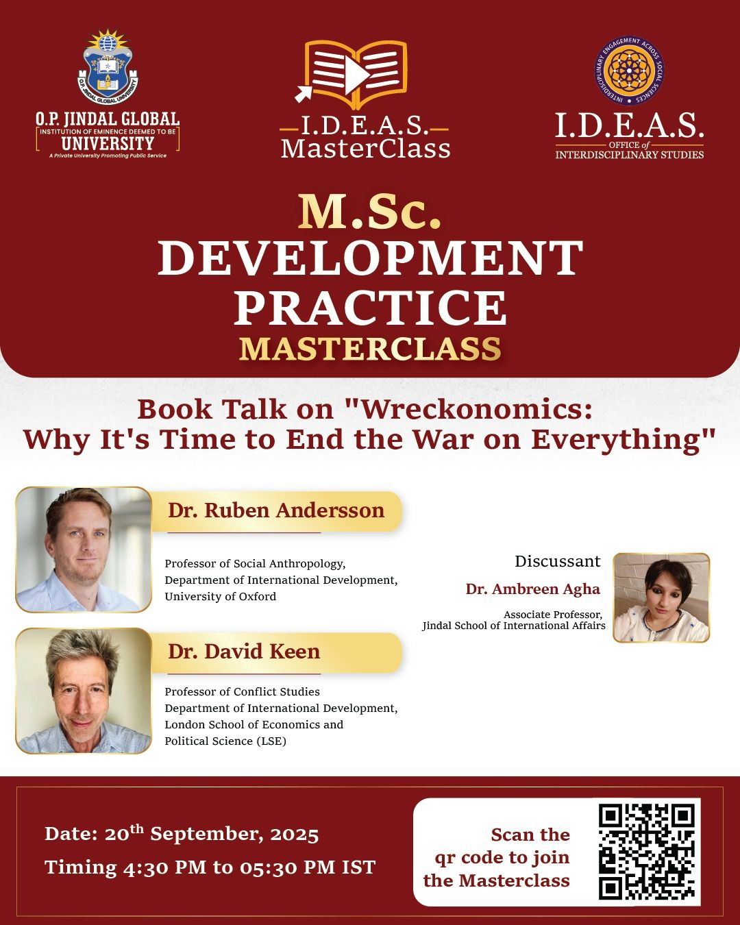 M.Sc Development Practice Masterclass Book Talk on, "Wreckonomics: Why Its Time to End the War on Everything" by Dr. Ruben Andersson, Professor of Social Anthropology, Department of International Development, University of Oxford and Dr. David Keen, Professor of Conflict Studies, Department of International Development, London School of Economics and Political Science.