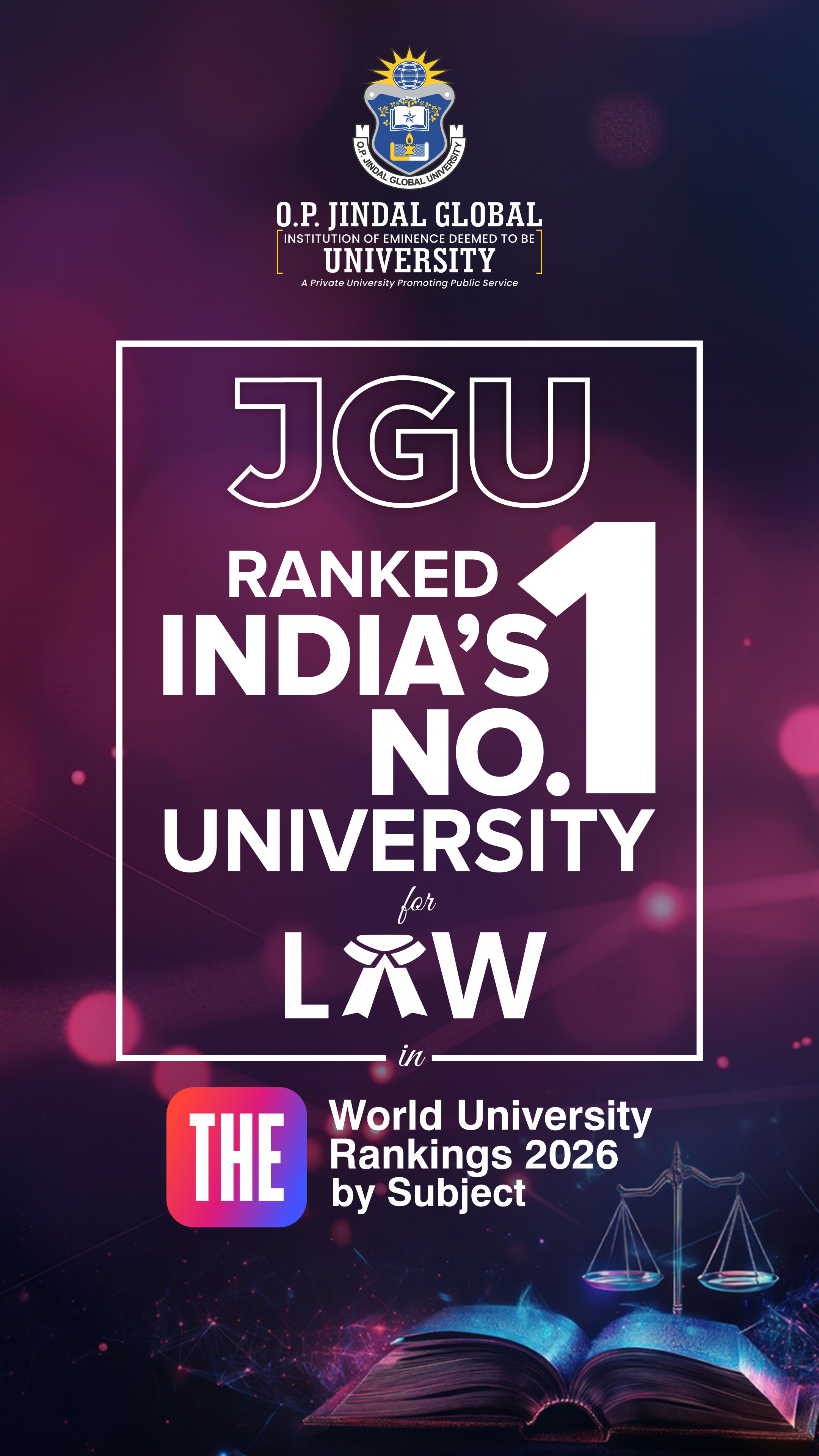 JGU is ranked 1st in India for Law, placing within the top 300 globally among universities from 53 countries, with International Outlook emerging as its strongest pillar—underscoring JGU’s deep global engagement and international reputation. This achievement further reinforces JGU’s leadership as Number One in Law in India across major global rankings, including THE, QS, and EduRank, firmly positioning JGU among the world’s leading institutions in legal education and research.