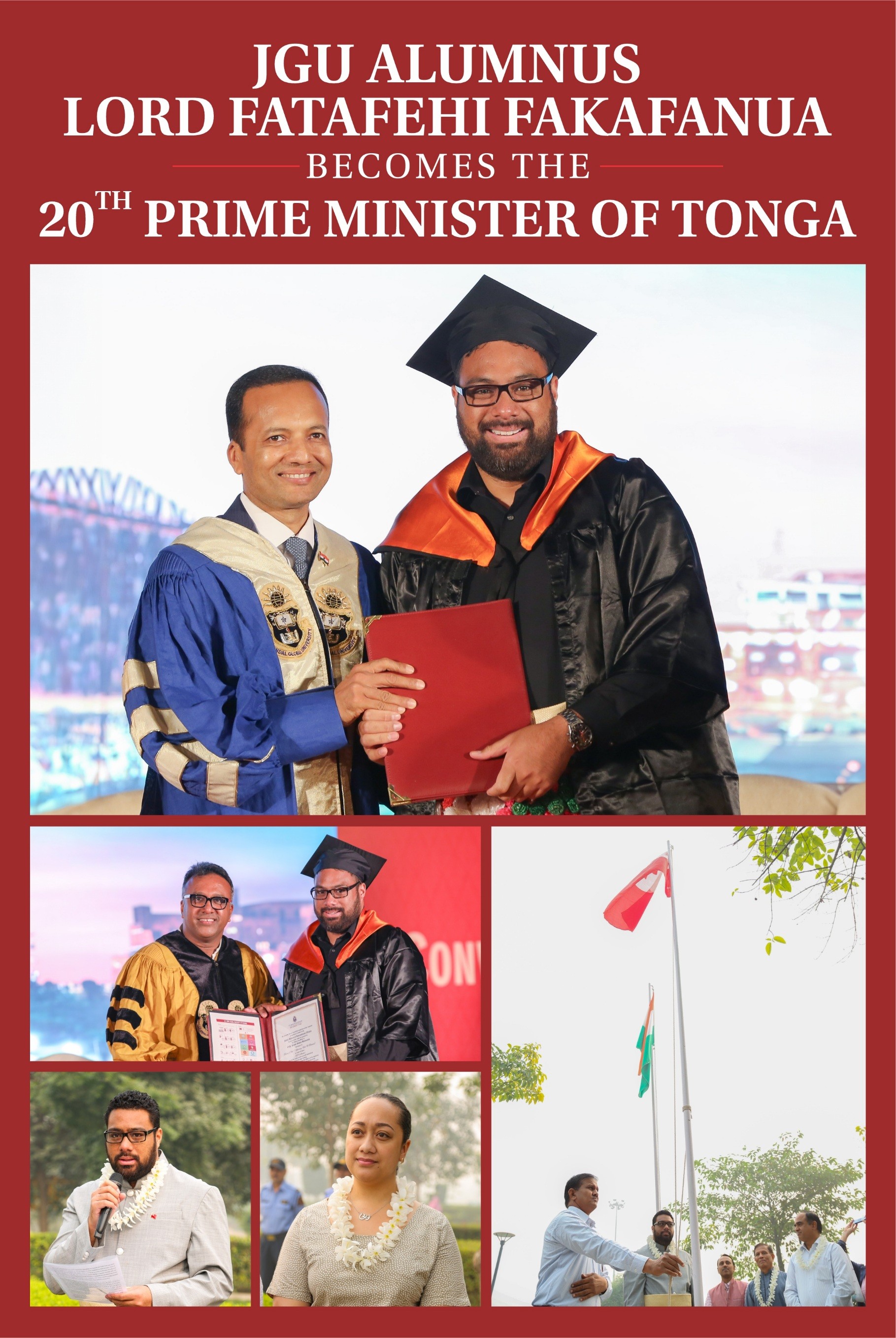 JGU takes great pride in Lord Fakafanua's distinguished achievements in public life and national leadership. He will always remain a remarkable ambassador of JGU and a powerful symbol of educational cooperation between India and the Pacific island countries. Our alumni, both Indian and international, continue to excel across diverse fields and sectors worldwide, but this marks the first time in JGU's history that one of our alumni has risen to the highest public office of a nation.