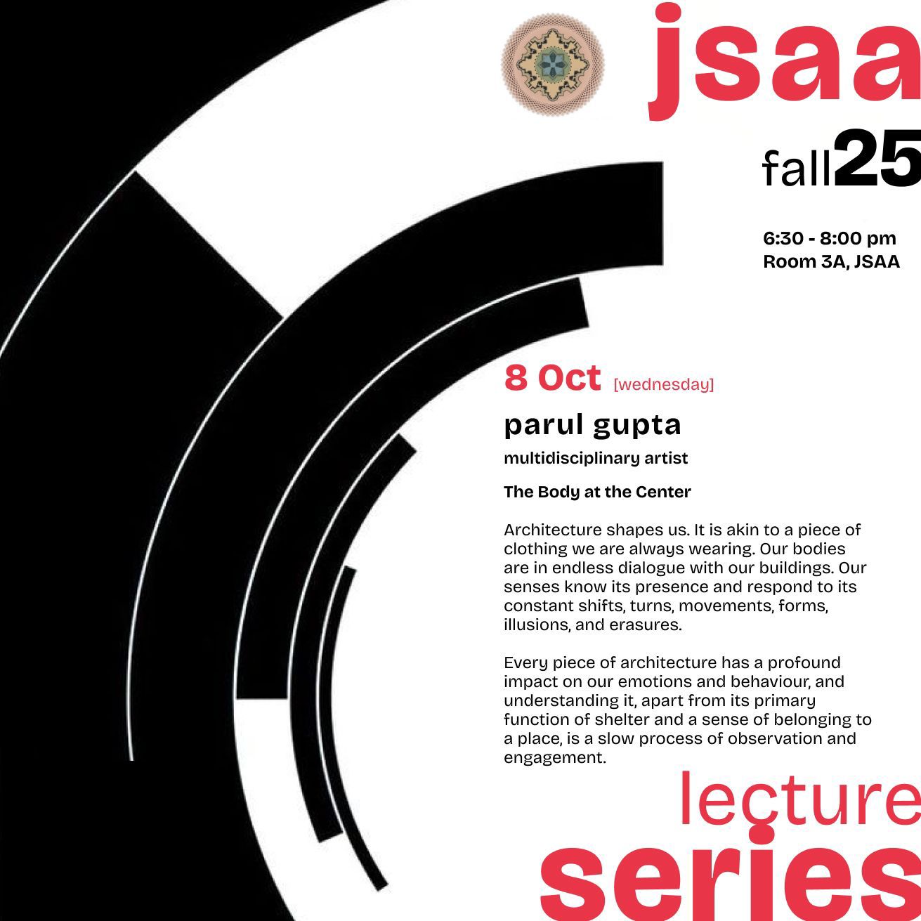 Office of Research and Faculty Development (ORFD) at the Jindal School of Art and Architecture, organized the JSAA Fall 2025 Lecture Series. The third talk was by Parul Gupta on Architecture and the Body.