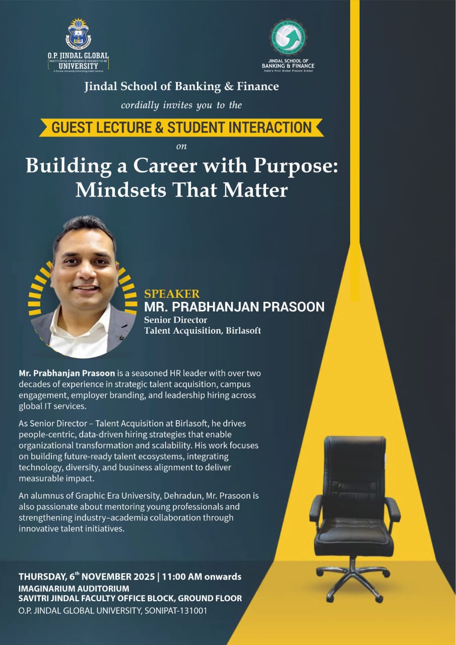 Guest Lecture & Student Interaction organised by Jindal School of Banking and Finance on, "Building a Career with Purpose: Mindsets that Matter" by Mr. Prabhanjan Prasoon, Senior Director, Talent Acquisition, Birlasoft.