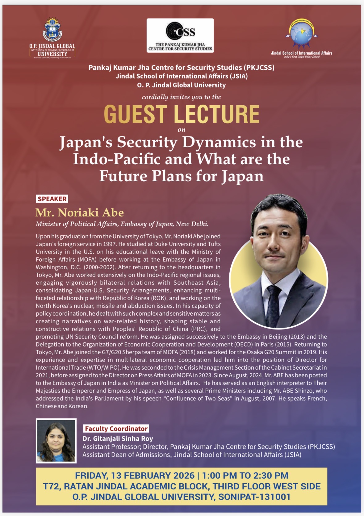 Mr. Noriaki Abe, Political Affairs Minister of the Embassy of Japan, New Delhi gave a talk on "Japan's Security Dynamics in the Indo-Pacific and What are the Future Plans for Japan."